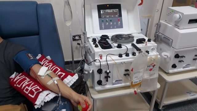 “Lo que hacemos previamente es tomarle una muestra de sangre a la persona que va a donar, un hemograma completo, y esos datos son cargados a la máquina, en conjunto con el peso y la estatura el paciente, y nos arroja la volemia, es decir la cantidad de sangre circulando en el organismo. Dependiendo de eso, nosotros evaluamos cuántos mililitros de plasma se le van a extraer a ese donante”.