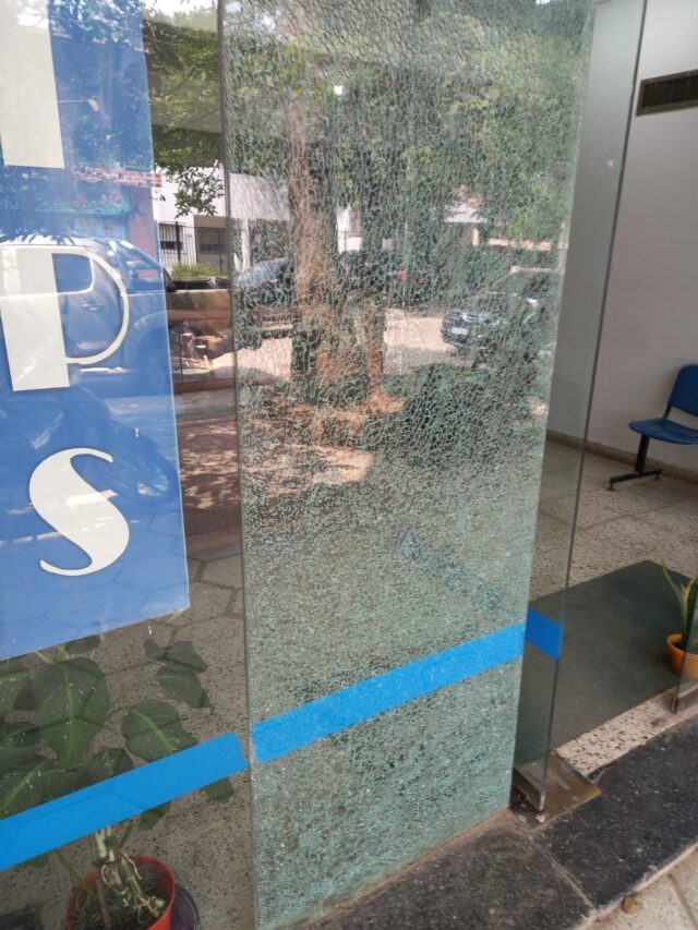 El administrador de Instituto de Pensiones Sociales (IPS), Hugo Arrúa, lamentó la situación de vandalismo que sufrió la oficina del organismo, cuando el domingo 19 a la noche la puerta de acceso fue quebrada por un piedrazo, siendo los autores del hecho unos jóvenes que festejaban la victoria libertaria en el ballotage presidencial.