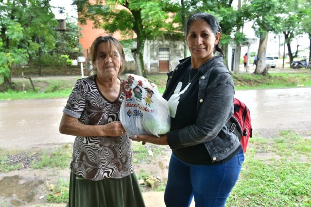 En la ciudad capital, pese a la lluvia, se cumplió con esta acción de estricta justicia social. Tal como estaba previsto, en forma simultánea inició este miércoles 20 el reparto de las bolsas navideñas en toda la provincia de Formosa. De esa manera, el gobernador Gildo Insfrán hace llegar el presente de la sidra y el pan dulce a cada uno de los hogares formoseños. En ese contexto, el diputado provincial del Partido Justicialista, Hugo García, estuvo coordinando esta acción en la Jurisdicción 1 de la ciudad de Formosa, donde reconoció el esfuerzo del gobernador Insfrán “para estar presente desde hace muchos años en todas las fiestas de fin de año”. Declaró también a la Agencia de Noticias Formosa (AGENFOR) que esta tarea que inició este miércoles se lleva adelante en toda la extensión provincial. “Por eso también quiero agradecerles a cada uno de los militantes y compañeros extraordinarios que desde las 5 de la mañana estuvieron con los camiones trabajando a pesar de la lluvia”, subrayó. Los barrios que se abarcaron fueron el Emilio Tomás, Fleming, Las Delicias, San Martín, San Miguel, San Agustín, La Floresta, El Resguardo, entre otros, enumeró el legislador. Este jueves 21 se continuará con el reparto de las bolsas navideñas hasta finalizar, agregó. Sobre el mismo tema, la diputada provincial Viviana Guzmán dijo: “Es un mensaje simbólico del gobernador Insfrán a las familias formoseñas del que nosotros somos transmisores”, valorando de esa manera la decisión del mandatario de estricta justicia social. Y aseveró que “Formosa es una de las pocas provincias en realizar esto, como gesto de amor” del primer mandatario hacia su pueblo.