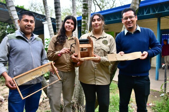 “A través de una impresora 3D, imprimen unos rodillos que luego se utilizan para estampar la cera reciclada que queda de los residuos de apicultura. El beneficio es en el costo que conlleva, porque el productor apícola compra hoy por hoy la cera estampada, con un costo considerable”, subrayó el docente, quien dijo que el objetivo final es reciclar esa cera.