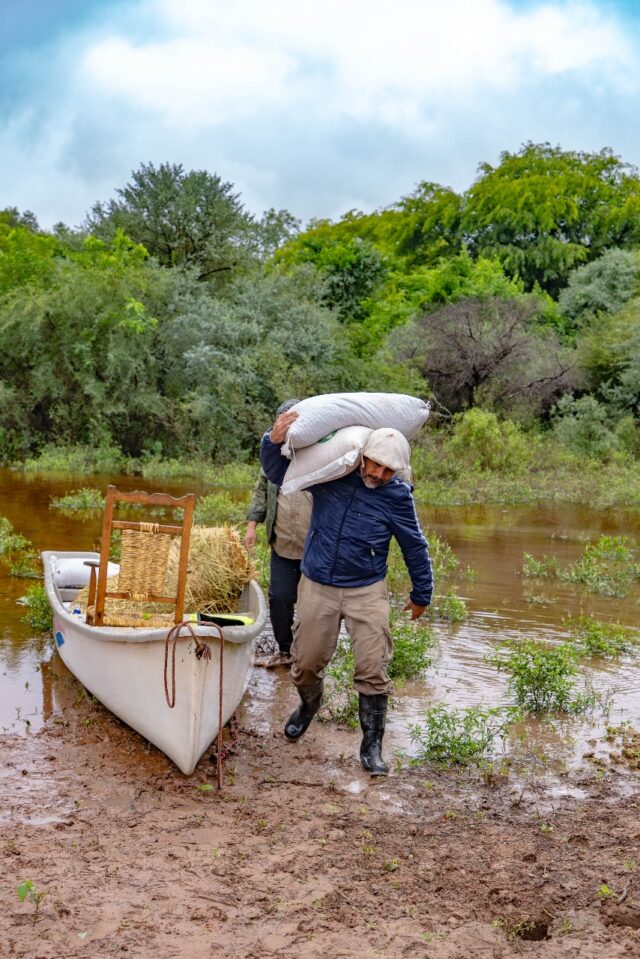 Otro de los equipos “está en Laguna Yema y tres que están trabajando puntualmente en el paraje San Marcos, donde pudimos este martes 1° de abril, a través de vehículos 4×4 y embarcaciones, asistir a productores afectados por la inundación. E incluyó también el traslado de sus pertenencias y animales a zonas más altas”, detalló.